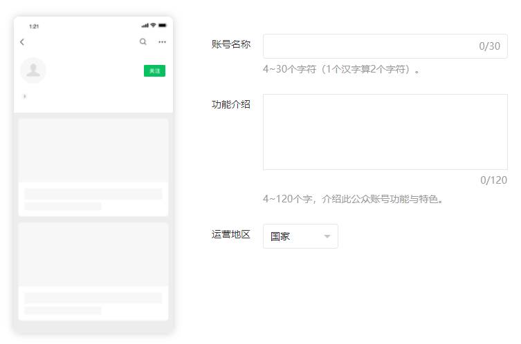 7、注冊成功后,填寫公眾號的相關(guān)信息,包括公眾號名,公眾號簡介