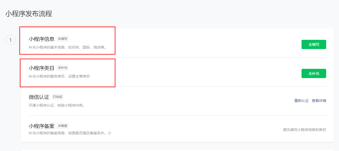 注冊成功后,完善小程序信息和小程序主營類目,按照里面提示完善