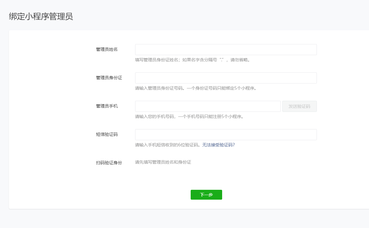 激活之后,填寫管理員的基本信息,這里默認是企業法人當管理員,需要手機驗證碼和微信掃碼驗證身份