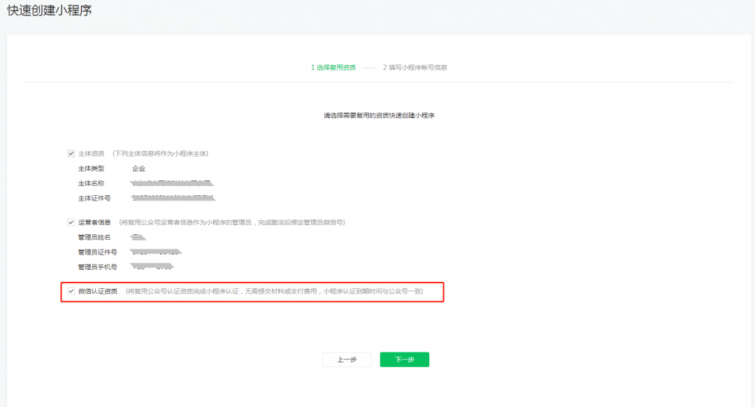 4、勾需要選快速創建小程序的資質