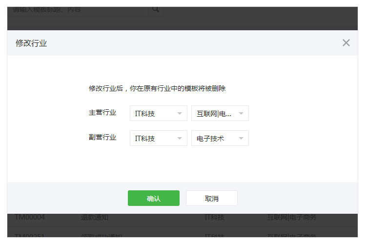 2、選擇公眾賬號服務所處的兩個行業,每月可更改一次所選行業